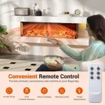 - Immersive 3-Sided View – Realistic flames visible from three sides for a dynamic, lifelike effect. The floating fireplace mantel and tempered glass panels on three sides provide panoramic flame visibility from any angle, creating a stunning focal point for your modern living space.