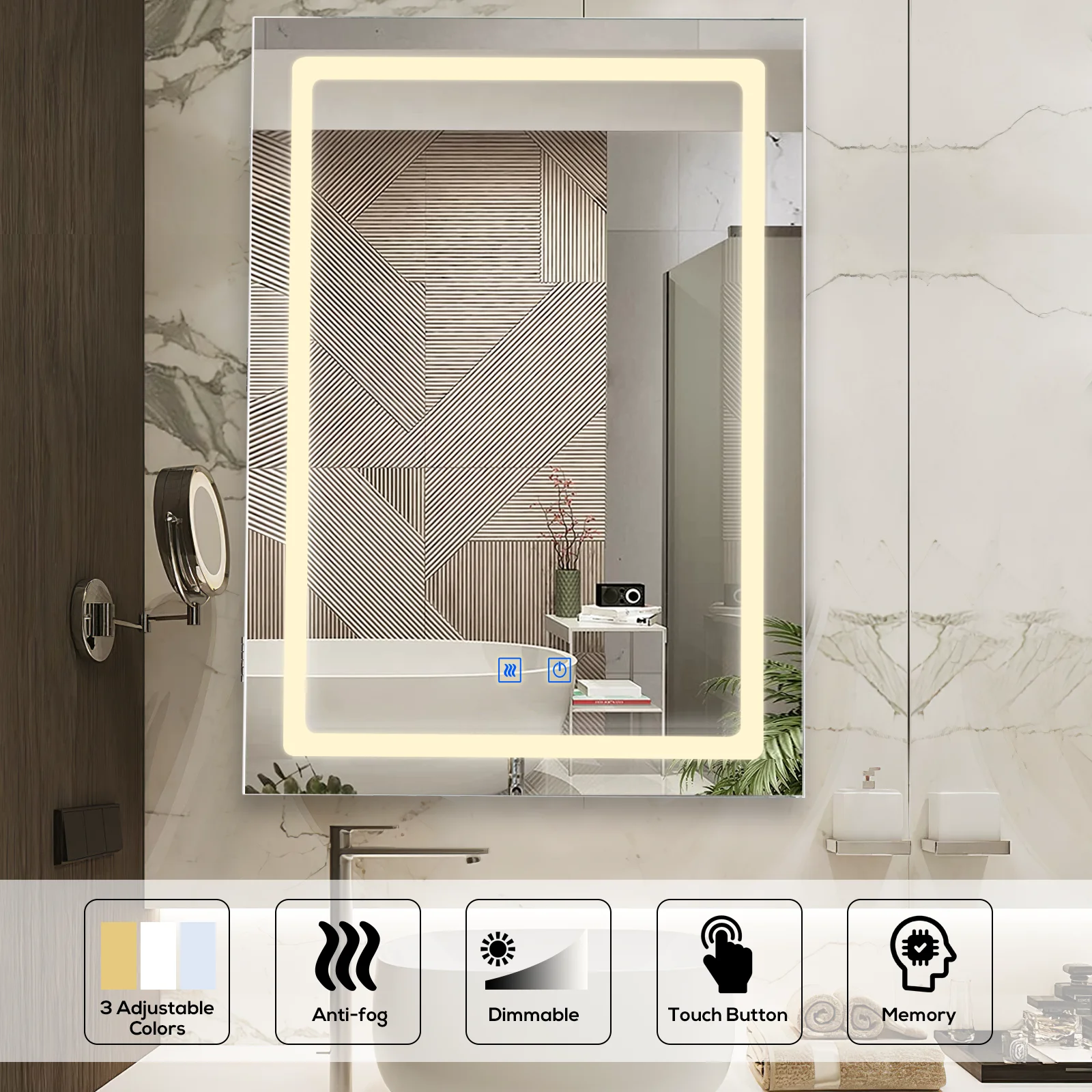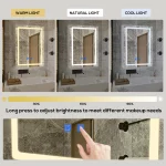 - ADJUSTABLE LED BACKLIT – Short press the light button to choose 3 color mode (cool, natural, warm). Long press to activate dimmer to change brightness. Functional enough for you to do makeup, skin care, shaving, or dressing up in the bathroom.