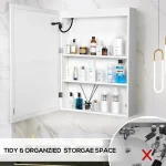 - MOISTURE PROOF MATERIAL – Made of quality engineered board with waterproof material on the surface. Not afraid of water vapor or splash in the bathroom, this medicine mirror cabinet ensures a long service life. Note: Cannot be recessed into the wall.