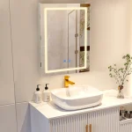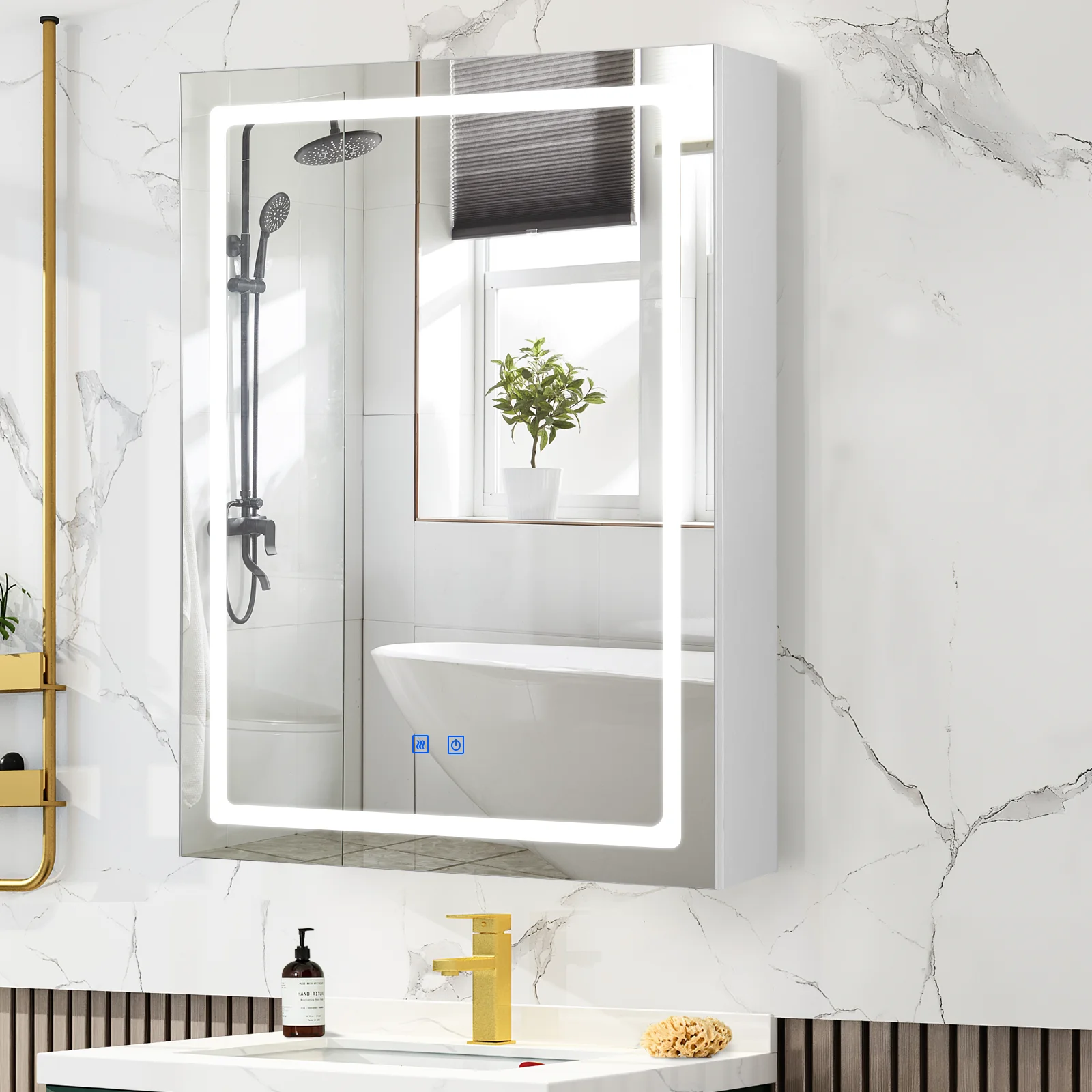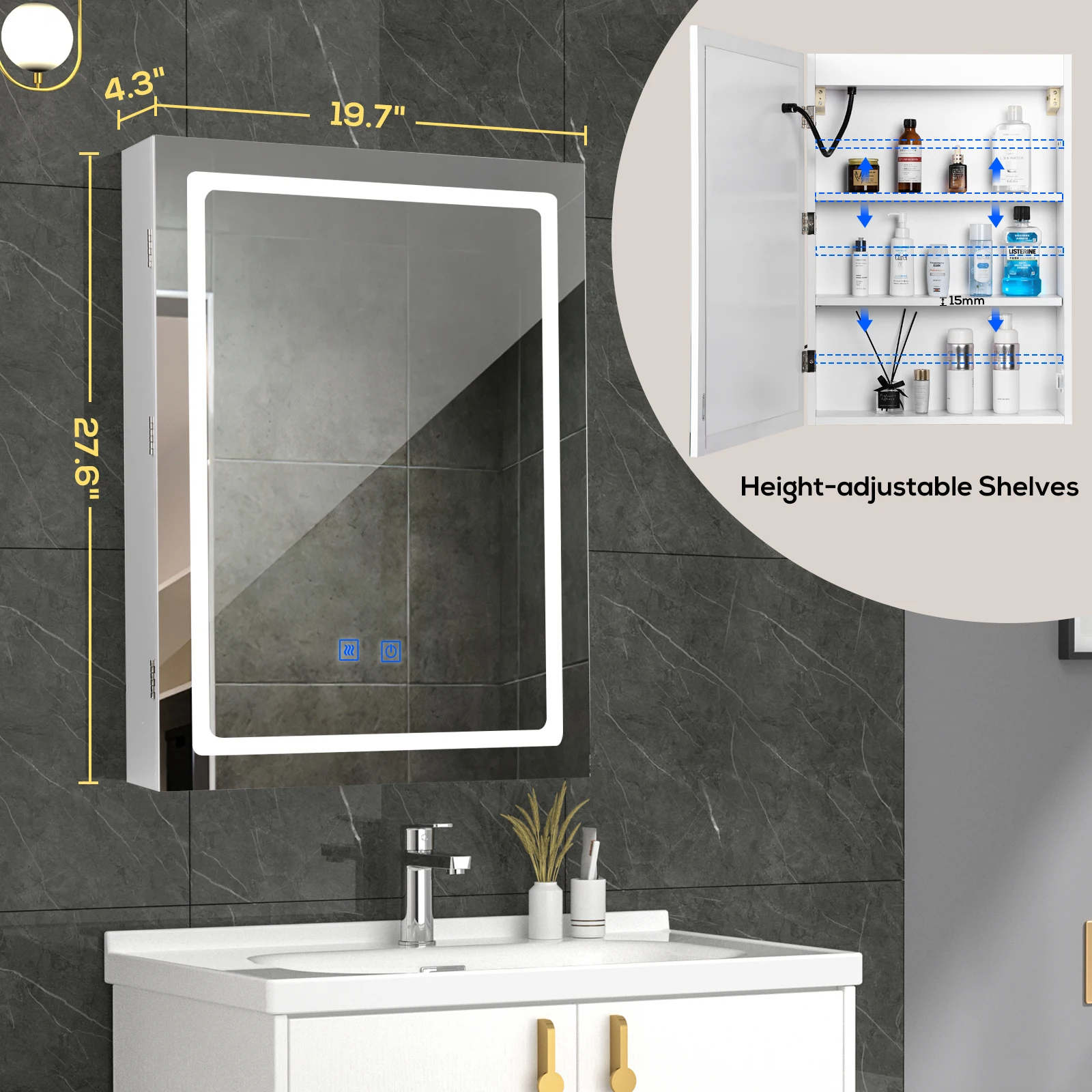 - WHAT YOU’LL GET – A bathroom medicine cabinet with a vanity mirror combining LED lights and efficient defogger. The mirror built in 2 touch sensors to control backlit and demist function. An ideal solution for storing, demisting, and illumination in the bathroom.